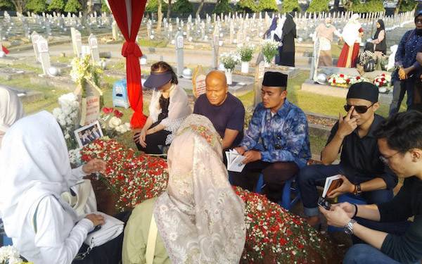 Kabartangerang.com, JAKARTA – Promotor musik Adrie Subono mengajak istri dan keluarga lainnya berziarah ke makam Presiden ke-3 RI BJ Habibie, Minggu (15/9).