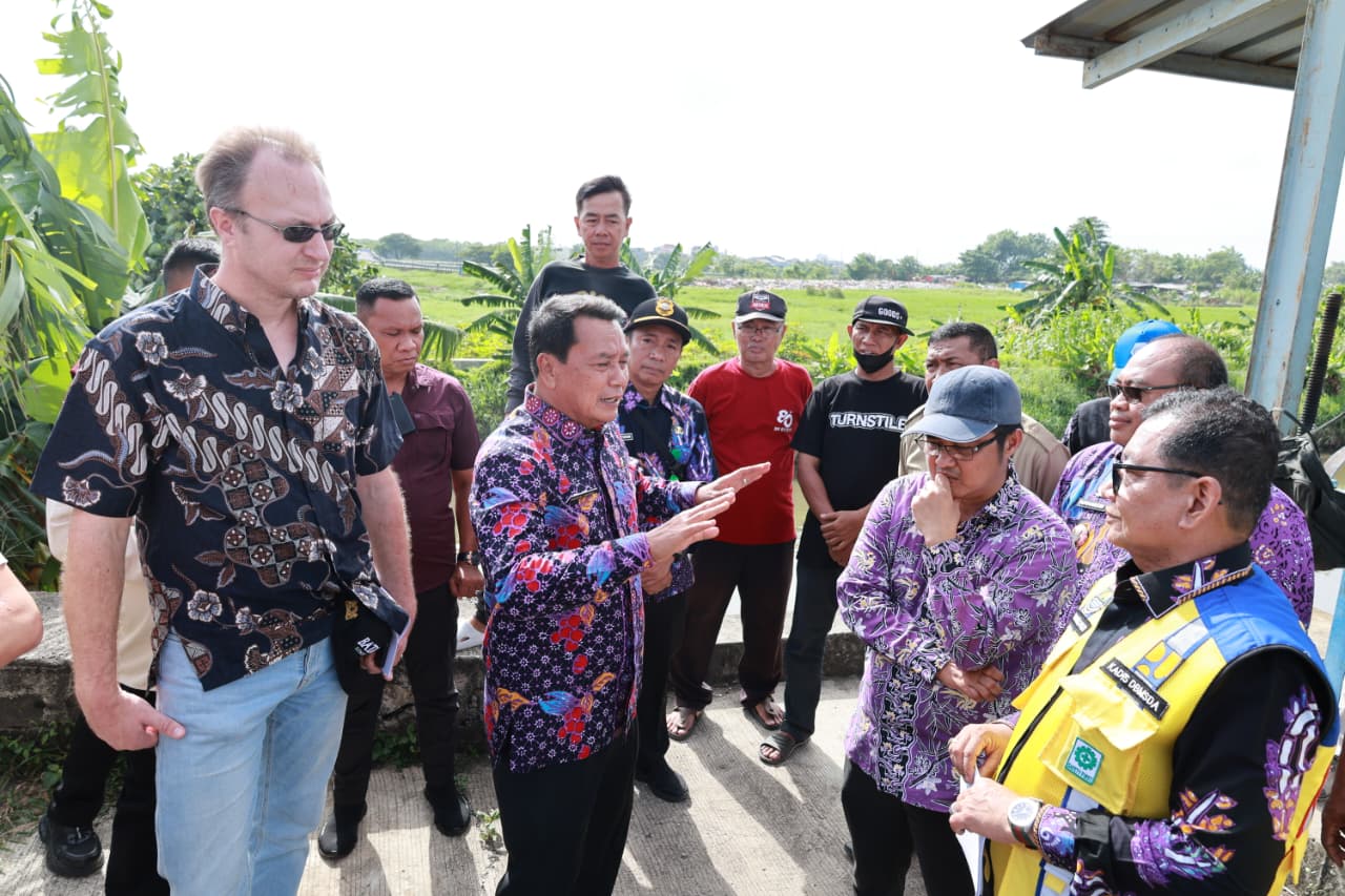 “Saya bersama Kadis Bina Marga, Kepala Bappeda, Camat Pasar Kemis dan dan Mr Rob dari Blue Deal Belanda datang ke sini dalam keadaan kering, pengen lihat bagaimana kondisi eksisting kondisi yang sebenarnya situ dan sungai terkait dengan tata kelola airnya,” ungkap Bupati Maesyal Rasyid.
