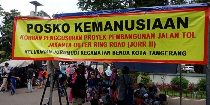 Palapanews. com- Warga korban penggusuran proyek pembangunan jalan tol Jakarta outer ring road (JORR II) yang berlokasi di Kelurahan Jurumudi, Kecamatan Benda membuka Posko Kemanusiaan yang berlokasi di depan Pusat Pemerintahan Kota Tangerang.