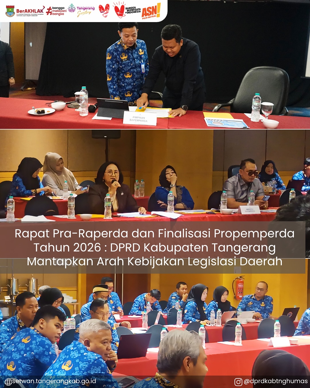 Dalam rangka memperkuat sinergi antara DPRD dan Pemerintah Kabupaten Tangerang dalam penyusunan kebijakan hukum daerah, DPRD Kabupaten Tangerang melalui Badan Pembentukan Peraturan Daerah (Bapemperda) menyelenggarakan Rapat Pra Rancangan Peraturan Daerah (Pra-Raperda) sekaligus Finalisasi Program Pembentukan Peraturan Daerah (Propemperda) Tahun 2026.