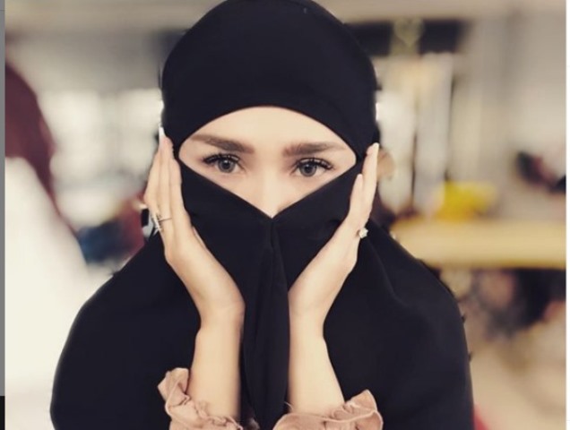 Kali ini, Mulan mengunggah foto dengan hijab menutup sebagian wajah seperti cadar.