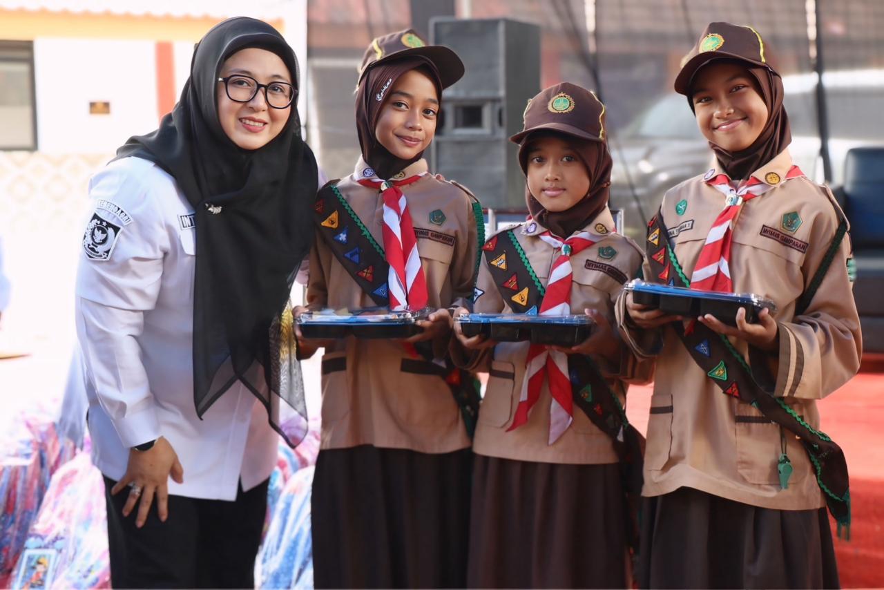 “Siapa yang mau jadi dokter? Siapa yang mau jadi bupati? Jangan takut bermimpi tinggi. Semua bisa tercapai asal rajin belajar, tekun, dan hormat pada orang tua serta guru,” pesan Wabup Intan yang disambut antusias para siswa.