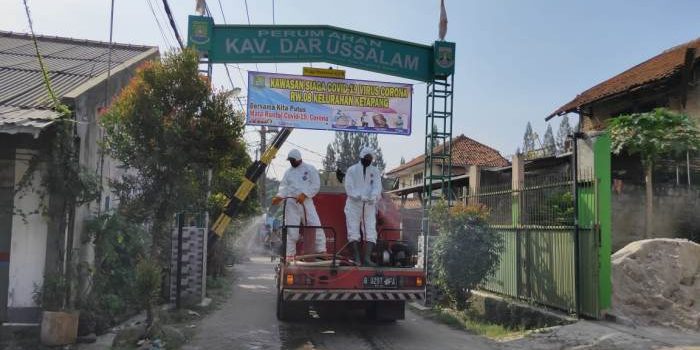 Kabartangerang.com- Penyebaran virus Covid-19 atau Corona yang kian signifikan dan terus memakan korban membuat warga Perumahan Darussalam (RW 08), Kelurahan Ketapang, Cipondoh, Kota Tangerang melakukan aksi penyemprotan disinfektan.